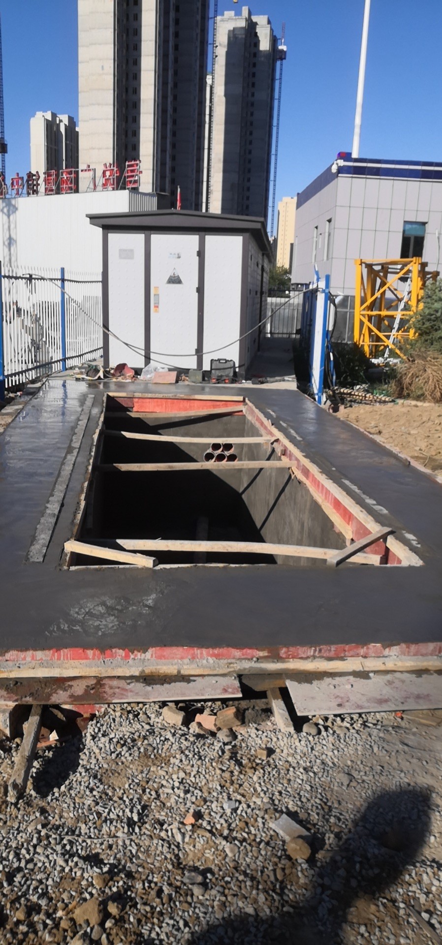 六月下旬,工程部接到了紅光山800kV箱變?cè)鋈輸U(kuò)建項(xiàng)目,因甲方提出要求要在最短的時(shí)間內(nèi)完成施工工作,項(xiàng)目經(jīng)理當(dāng)天便去現(xiàn)場進(jìn)行了勘察,發(fā)現(xiàn)施工場地與現(xiàn)場施工道路發(fā)生沖突并且箱變擴(kuò)建的下方有10kV投運(yùn)電纜通過,因此項(xiàng)目經(jīng)理對(duì)箱變安裝位置進(jìn)行了調(diào)整和對(duì)施工人員進(jìn)行了施工安全隱患的溝通,減少了事故的發(fā)生。第二天跟進(jìn)了箱變施工前現(xiàn)場清理準(zhǔn)備工作方便了后期箱變施工的場地環(huán)境。項(xiàng)目施工期間由于工期緊張外加高溫天氣持續(xù),為切實(shí)做好夏季施工的防暑降溫工作,切實(shí)保障建筑施工作業(yè)人員的身體健康和生命安全、避免施工作業(yè)人員中暑昏迷,特做了相對(duì)應(yīng)的防暑措施以及中暑預(yù)案。施工方面更是全權(quán)按照施工規(guī)程有條不紊的進(jìn)行。施工人員也沒有因?yàn)樘鞖庋谉釓亩悠诨蛲V故┕さ倪M(jìn)展,最終在規(guī)定時(shí)間內(nèi)按時(shí)完成了施工任務(wù)。