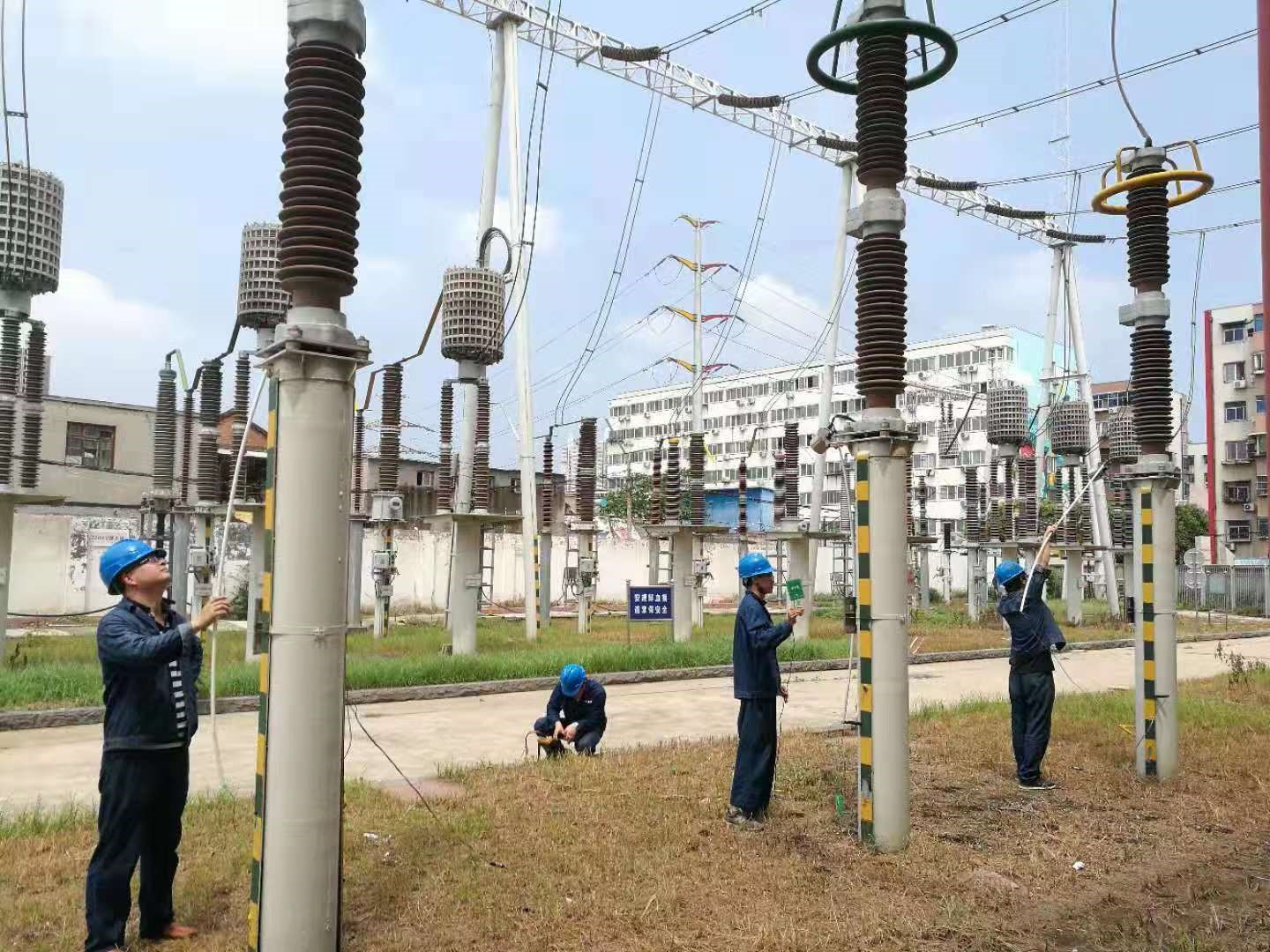 2019年5月初北京新能中試科技有限公司電氣試驗(yàn)部4名骨干應(yīng)要求前往鄭州參加安全教育培訓(xùn),順利通過了安規(guī)考試,并開始按檢測方案進(jìn)行變電站保電設(shè)備帶電檢測工作。由于此次檢測工作包含紅外精確測溫。SF6氣體分析,避雷器阻性電流,變壓器、GIS組合電器等局部放電檢測,所以涉及的檢測設(shè)備多,且檢測方案時(shí)間緊迫,因此每天至少要完成一座110kV以上的變電站檢測工作。按照工作實(shí)施方案,每天工作結(jié)