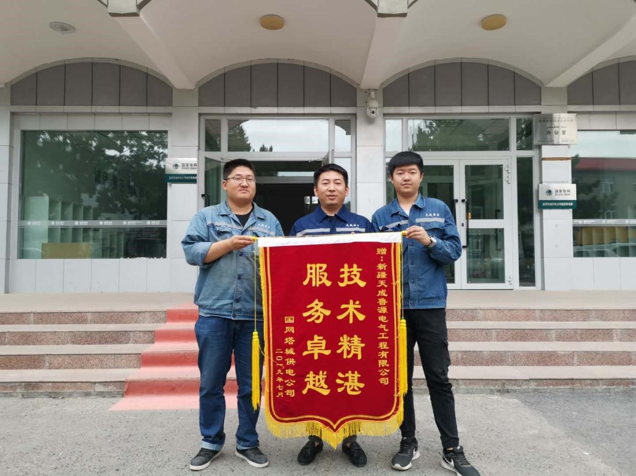 “服務(wù)卓越,技術(shù)精湛”國(guó)網(wǎng)塔城供電公司贈(zèng)予我公司的一面錦旗,代表著塔城戶表項(xiàng)目圓滿完工。在整個(gè)施工過(guò)程中,項(xiàng)目部全體成員兢兢業(yè)業(yè),認(rèn)真組織,對(duì)施工中碰到的新設(shè)備、新工藝,積極與廠家技術(shù)人員溝通學(xué)習(xí),保證設(shè)備安裝后順利運(yùn)行。同時(shí),在施工過(guò)程中